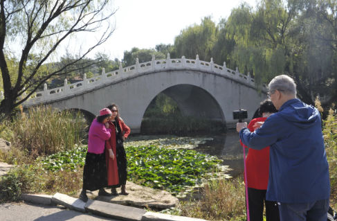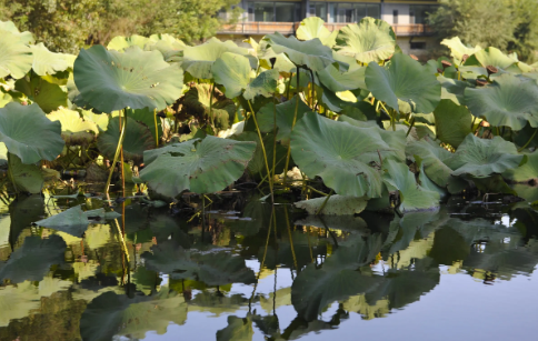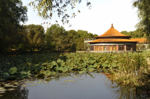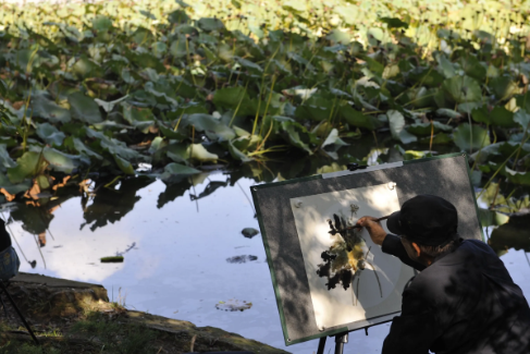 10月14日秋高气爽,鞍山玉佛苑荷花池内,荷花虽谢,棕色荷藕仍立在翠绿荷叶间,色彩交织尽显秋意。当日温度适宜,不少市民前来寻秋赏景、拍照打卡。残荷为秋日玉佛苑添了份雅致。