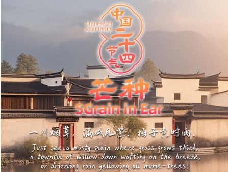 芒种期间,长江中下游地区将进入细雨绵绵的梅雨季节,此时正好梅子成熟,因而得名。梅雨时节的宏村,烟雨朦胧,宛如仙境,白墙黑瓦的徽派建筑与青山绿水相互映衬,构成一幅水墨画。芒种一到,繁花似锦的盛景渐行渐远,因此人们也常在此时送花神,表达对花神的感激之情,期盼来年花草繁茂。世界上许多地方也有对花卉的崇拜,例如保加利亚每年都会举办“玫瑰节”,人们跳舞唱歌庆祝玫瑰的丰收。对自然之美的共同热爱跨越了国界。