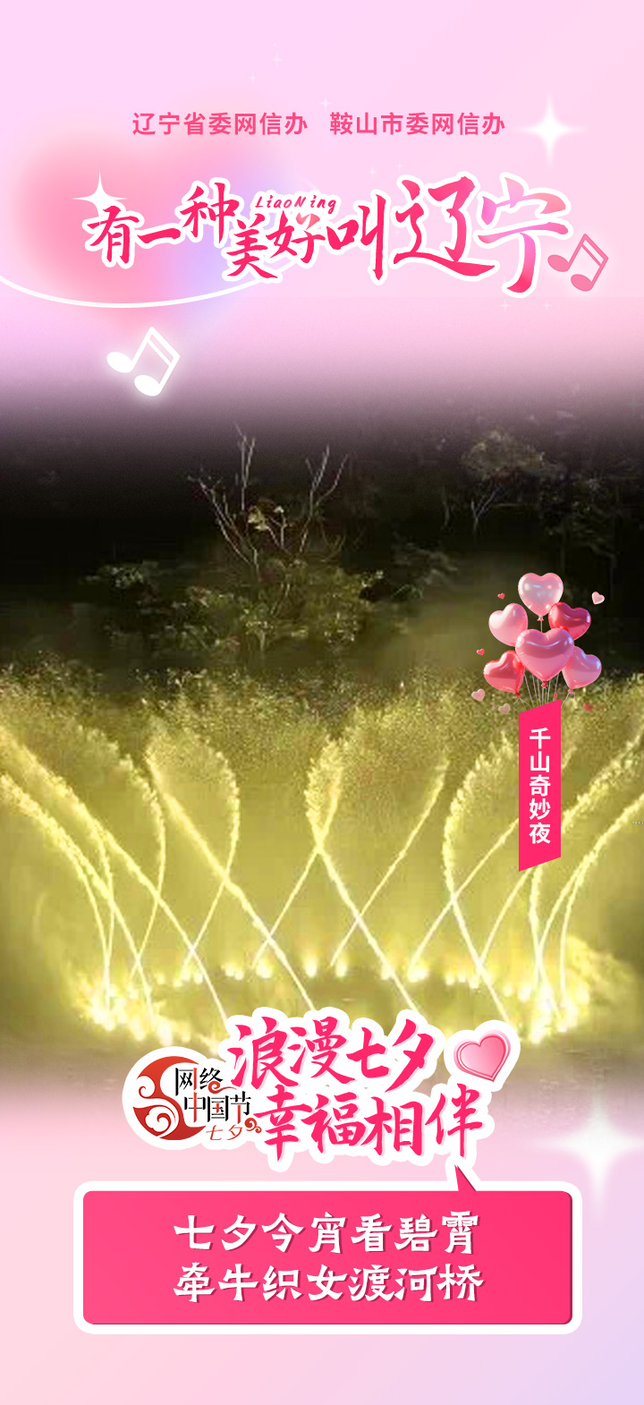 七夕之夜,千山奇妙夜人气爆棚,各地游客接连涌入千山,尤其是音乐喷泉所在的云潭湖畔,人山人海,摩肩擦踵,场面十分壮观。游客们赏喷泉、观光影、热情互动,乐享浪漫七夕。