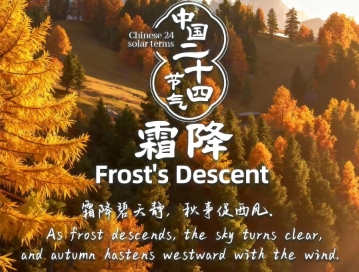 深秋时节,霜降恰如一位带着凛冽诗意的哲人,用白霜为大地写下关于生命韧性的箴言。霜降的到来,意味着自然界的万物开始进入休养生息的状态。树叶纷纷落下,动物开始冬眠,大地一片宁静,整个自然界正完成从繁盛到蛰伏的庄严过渡。气肃而凝,露结为霜。不同于春的活泼、夏的热烈,霜降的美在于其肃杀中的生机——枫叶经霜愈艳,柿子挂霜更甜。那些霜打菜、霜降蜜桃等时令风物,实则是自然与人类达成的默契:接受短暂的严酷,换取长久的丰饶。农人最懂霜降的密语。你看,华北平原上,老农正蹲在田埂捏碎土块,通过霜冻深度判断来年墒情;江南水乡,渔民们正赶在寒潮前收网,将最后一批肥蟹送入市场。寒风中,他们的身影显得格外忙碌,脸上却洋溢着收获的喜悦。